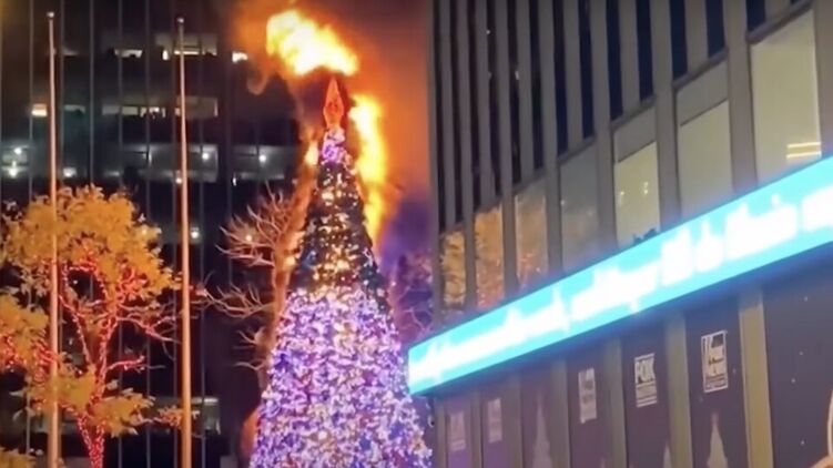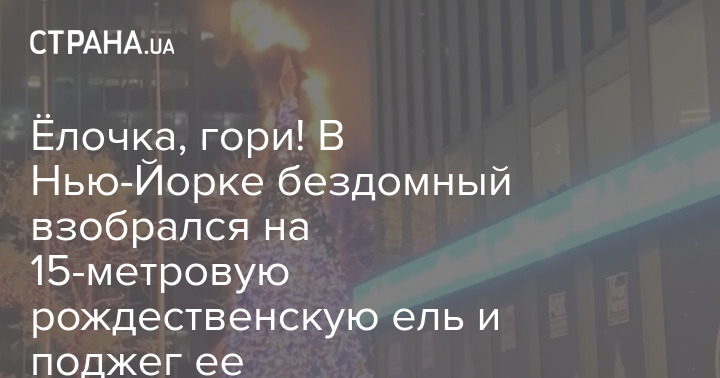 Ёлочка, гори! В Нью-Йорке бездомный взобрался на 15-метровую рождественскую ель и поджег ее