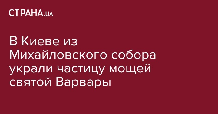 Из Михайловского Златоверхого собора (УПЦ Киевского патриархата) на ул. Трехсвятительской в Киеве накануне длительных выходных украли ковчежек с частицей чудотворных мощей святой великомученицы Варвары. Об этом пишет сегодня, 9 марта, "Обозреватель", которому подтвердил факт кражи и рассказал подробности Архимандрит Лаврентий.