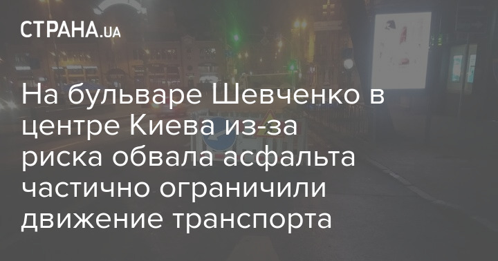 На бульваре Шевченко в Киеве введено частичное ограничение движения транспорта из-за риска повторного обвала дорожного покрытия