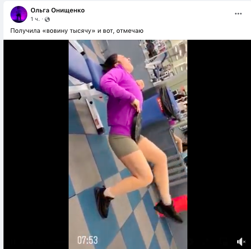 Журналистка Ольга Онищенко показала, как "отмечает" получение "Вовиной тысячи", которую можно будет потратить на спорзал.