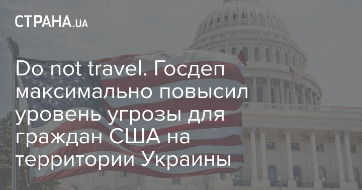Государственный департамент США повысил степень угрозы для граждан Соединенных Штатов, пребывающих на территорию Украины до максимального четвертого уровня - Do not travel (Не путешествовать).