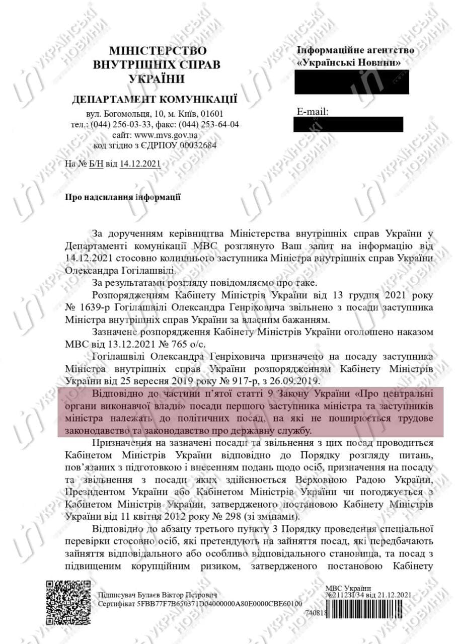 В официальном разъяснении МВД для "Украинских новостей" такой в подход к кадрам объясняется тем, что должность у Гогилашвили - "политическая", а значит, на него не распространяется трудовое законодательство и законодательство о госслужбе.
