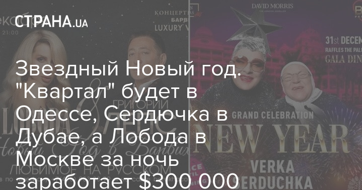 Звездный Новый год. "Квартал" будет в Одессе, Сердючка в Дубае, а Лобода в Москве за ночь заработает $300 000