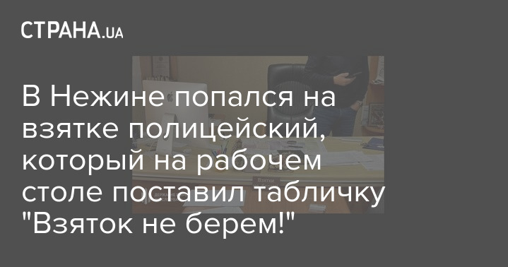 В Нежине попался на взятке полицейский, который на рабочем столе поставил табличку "Взяток не берем!"