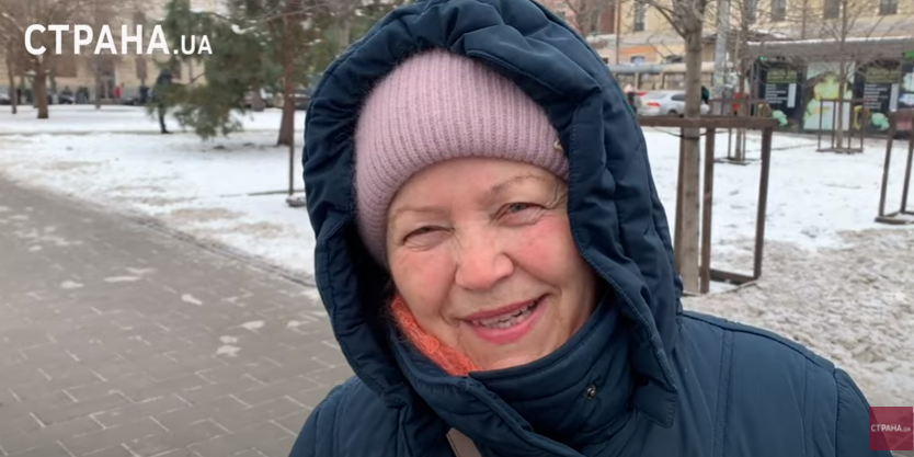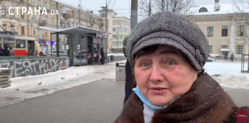 Дальше корреспондент "Страны" задает вопрос пенсионерки и получает неожиданный ответ, мол призывать можно тех, кому за 60, чтобы могли есть приготовить и военным носки связать.