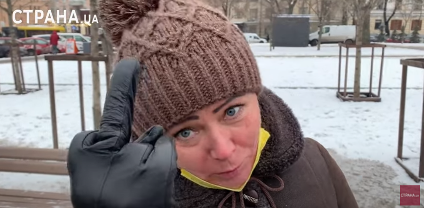 "О-три-ца-тель-но. И еще я вам хочу сказать: землю продали, нам отстаивать нечего. Имущество Порошенко, Зеленского и иже с ними я отстаивать не собираюсь вообще. Вот им", - показала она средний палец.