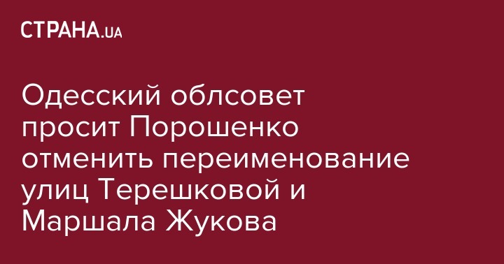 Одесский облсовет просит Порошенко отменить переименование улиц Терешковой и Маршала Жукова