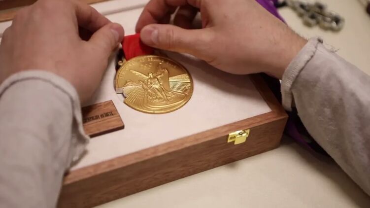 Судя по опубликованным кадрам, полностью медали переплавлять не стали, а лишь взяли их части.