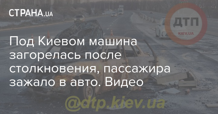 Под Киевом машина загорелась после столкновения, пассажира зажало в авто. Видео