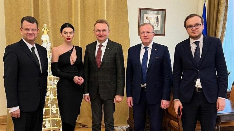 Напомним, недавно мэр Львова Садовой опубликовал фото, на котором в компании чиновников была запечатлена девушка в откровенном платье. Как выяснилось, на снимке была Кристина Тышкун - помощница замминистра образования Украины. Девушка была ярко накрашена: ее губы были подведены красной губной помадой. На ней было надето облегающее вечернее платье с большим вырезом на груди. Образ дополнял крестик, надетый поверх платья.