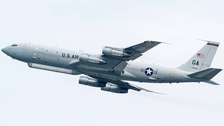 Самолет боевого управления и целеуказания E-8C создан на базе пассажирского лайнера Boeing 707-300 и оснащен разведывательной аппаратурой. Его бортовая антенна имеет обзор 120 градусов и позволяет охватывать в минуту около 50 тысяч квадратных километров. Разведчик отслеживает как наземные, так и воздушные цели.