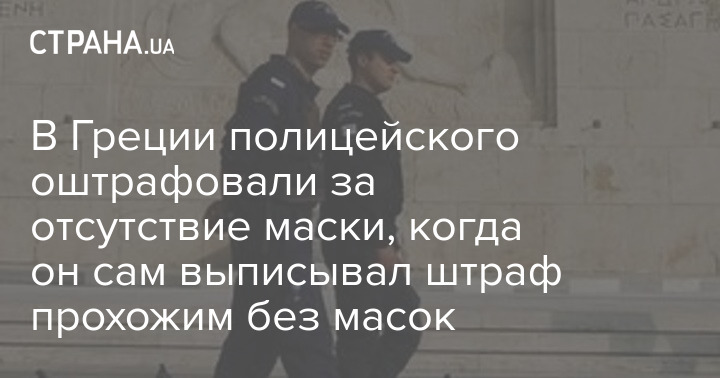 В Греции полицейский, штрафовавший людей за отсутствие защитных масок, заплатит штраф в 300 евро. Так его наказали за то, что у него самого во время рейда не было маски на лице.