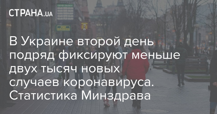 В Украине второй день подряд фиксируют меньше двух тысяч новых случаев коронавируса. Статистика Минздрава