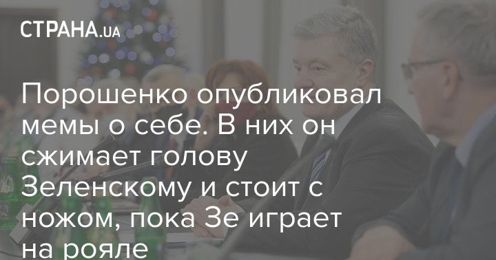 С этим ножом, например, экс-президент изображен на фотожабе, где Зеленский еще выступает с "Кварталом 95" с известным номером с роялем.