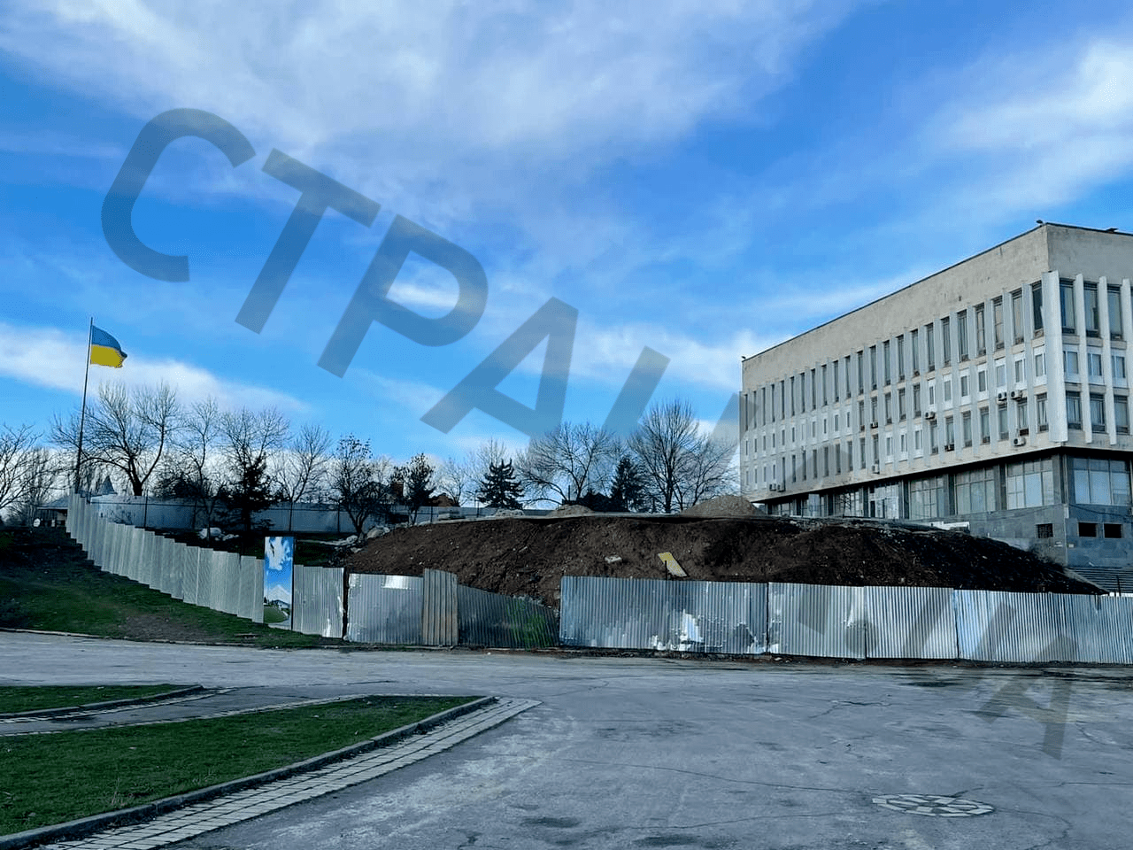 В Херсоне не стали ремонтировать рухнувший флагшток, а поставили его изображение. Фото: Скриншот из видео