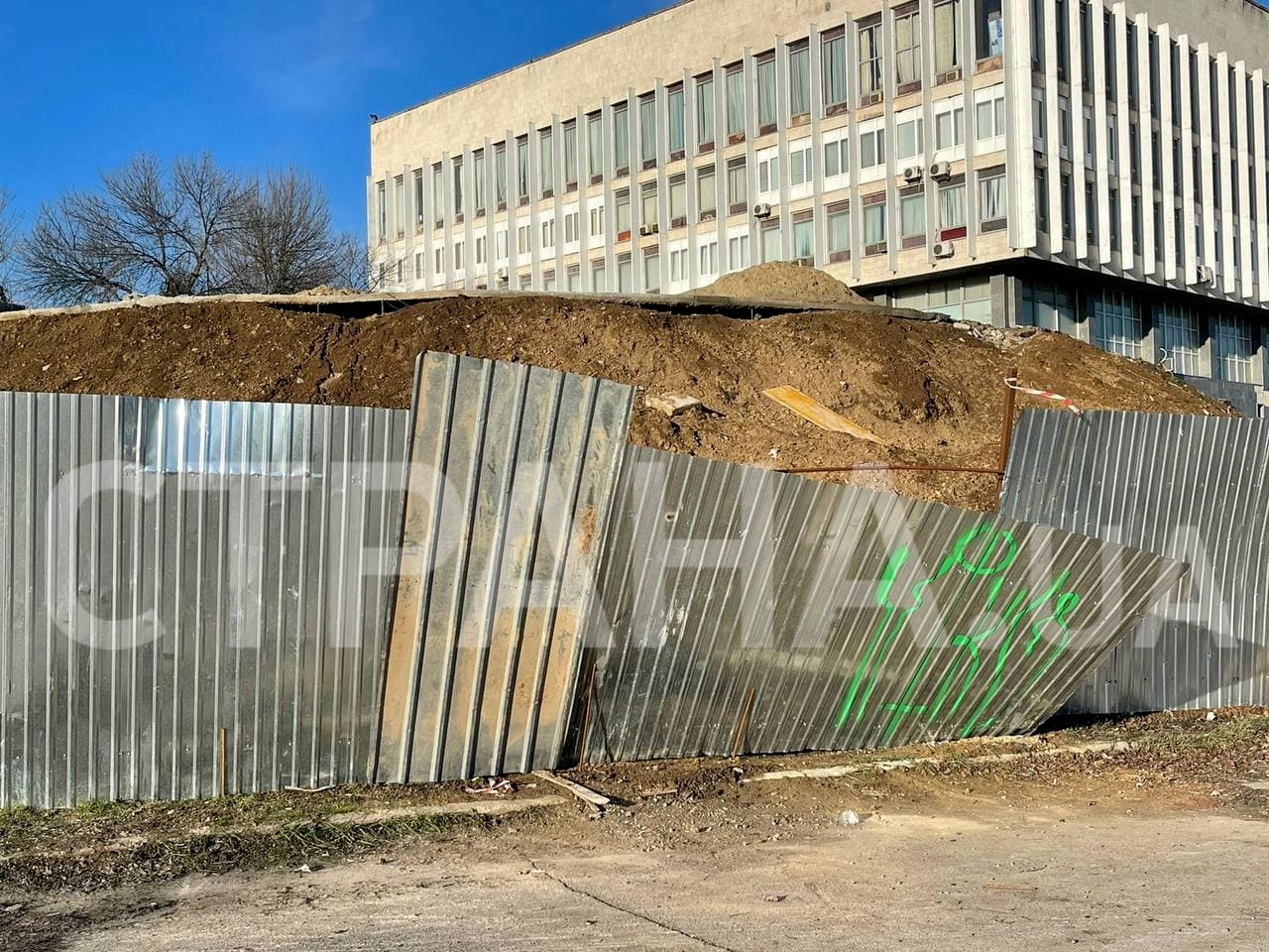 На кадрах можно заметить, что восстанавливать рухнувший флагшток никто не стал. Вместо этого у забора разместили изображение флагштока.