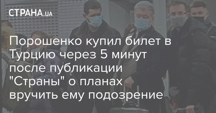 "То, что Порошенко в тот же день вечером купил билет на самолёт, менее, чем за два часа до вылета, показывает, что он это делал в спешке. То есть, его поведение можно трактовать как побег из страны. Это, безусловно, также будет использовано в суде при обосновании меры пресечения в виде взятия под стражу", - сказал "Стране" источник в прокуратуре.