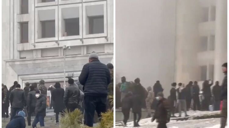"Спутник Казахстан" добавляет, что изначально протестующие подожгли здание акимата. Другая часть протестующих прорвалась в старую резиденцию президента в Алматы (новая резиденция президента Казахстана Касыма-Жомарта Токаева находится в Нур-Султане, Ред), также горит здание городской прокуратуры.