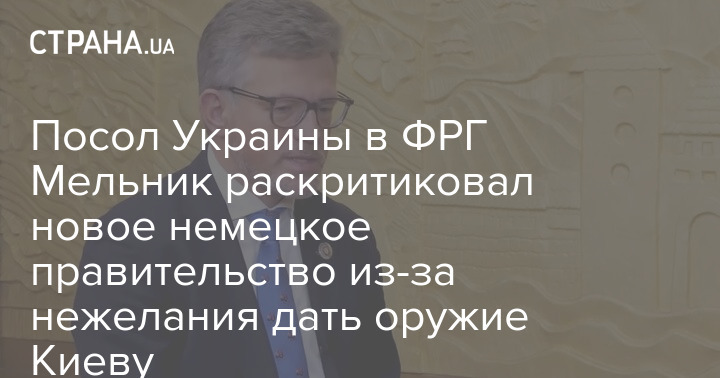 Посол назвал  "цинизмом" блокирование Германией поставок оружия в Украину. По мнению Мельника, от нового правительства ФРГ не стоит ждать другой политики по этому вопросу.