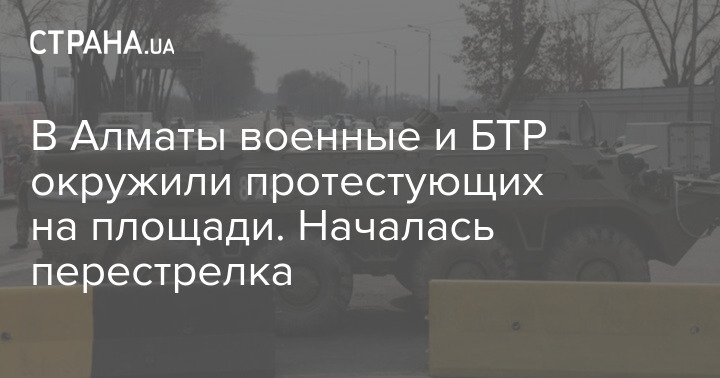 В Алматы военные и БТР окружили протестующих на площади. Началась перестрелка