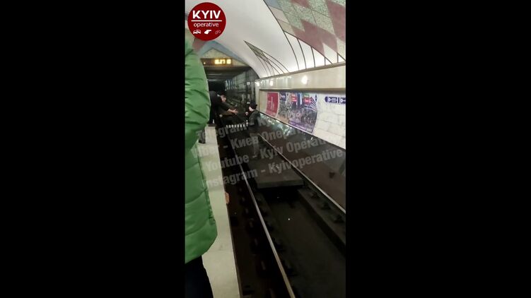 В метро Киева мужчина спрыгнул на колею и на полчаса задержал поезда. Видео