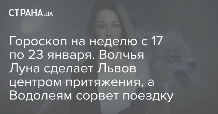 Подготовили подробный гороскоп на предстоящую неделю - с 17 по 23 января. Неделя станет особо благоприятной для Львов, чей знак зодиака окажется в эпицентре всевозможных событий благодаря первому в этом году полнолунию 18 января (в 01:51 по Киеву). Его часто называют Волчьим, потому что волки в это время становятся особенно агрессивными и свирепыми. В эзотерике это особый энергетический день, который принесет много удачи творческим людям, а вот бизнесменам может подпортить часть планов.