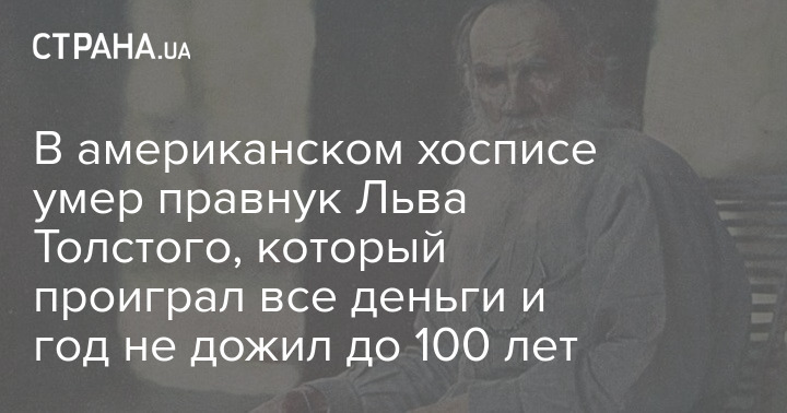 В американском хосписе умер правнук одного из самых известных русских писателей Льва Толстого Сергей. Мужчине было 99 лет и он умер в нищете.