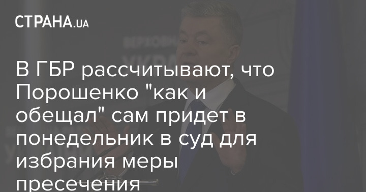 В ГБР рассчитывают, что Порошенко "как и обещал" сам придет в понедельник в суд для избрания меры пресечения