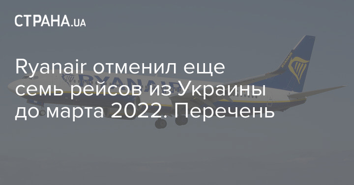 По информации системы бронирования перевозчика, Ryanair отменил семь маршрутов из Киева, Львова и Херсона Украины до конца февраля 2022 года.