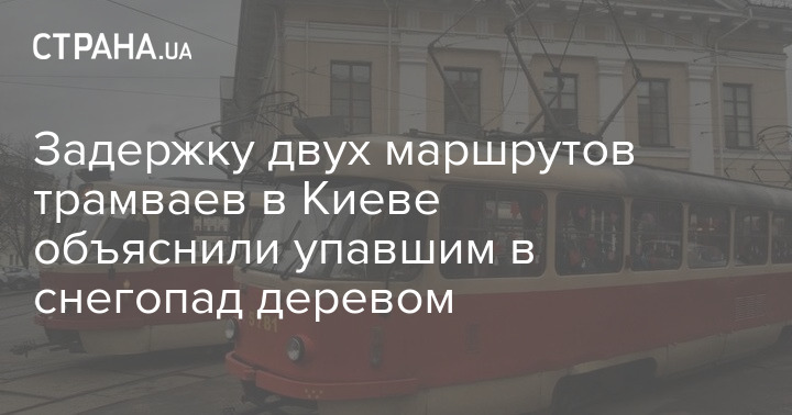 В Киеве 14 января на улицах сильный ветер и снег, из-за мощного ветра объявлен оранжевый (второй) уровень опасности. По улице Дегтяревская, 28 упало дерево, это стало причиной задержки трамваев.