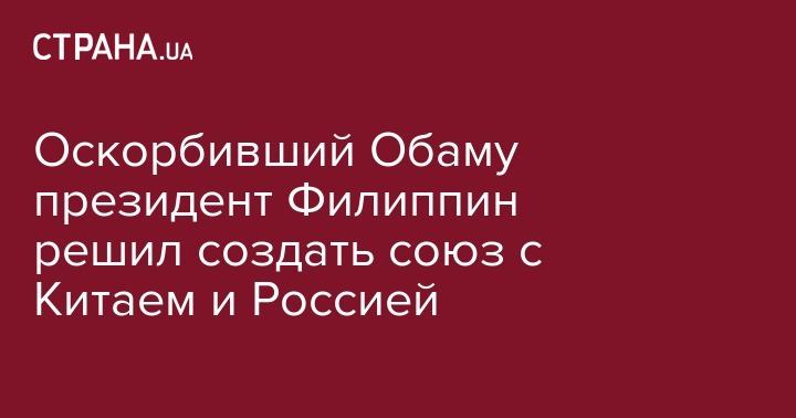 Как сообщала "Страна", президент Филиппин Родриго Дутерте заявил о том, что действующий президент США Барак Обама "является сыном шлюхи". Также Дутерте посоветовал Обаме "не читать ему лекций" в ответ на критику убийств наркоторговцев на Филиппинах.