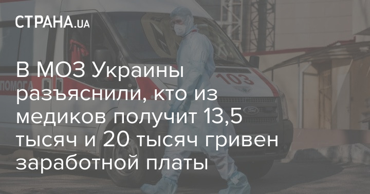 В МОЗ добавили, что базовая заработная плата не менее 20 тысяч гривен установлена ​​для врачей (кроме врачей-интернов), профессионалов с высшим немедицинским образованием, которые допущены к медицинской деятельности в учреждениях здравоохранения.