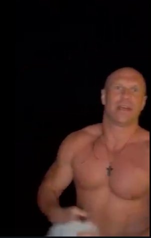 Двукратный олимпийский призер в спортивной гимнастике Олег Верняев совершил омовение в открытом киевском водоеме. Зайдя в воду, он трижды перекрестился и нырнул с головой. После этого бодро вышел и немного попрыгал на дощатых подмостках.