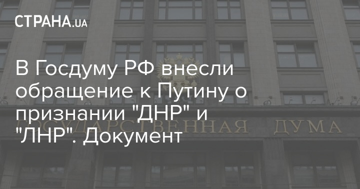 В Госдуму России депутаты внесли проект обращения к президенту Владимиру Путину "О необходимости признания ДНР и ЛНР".