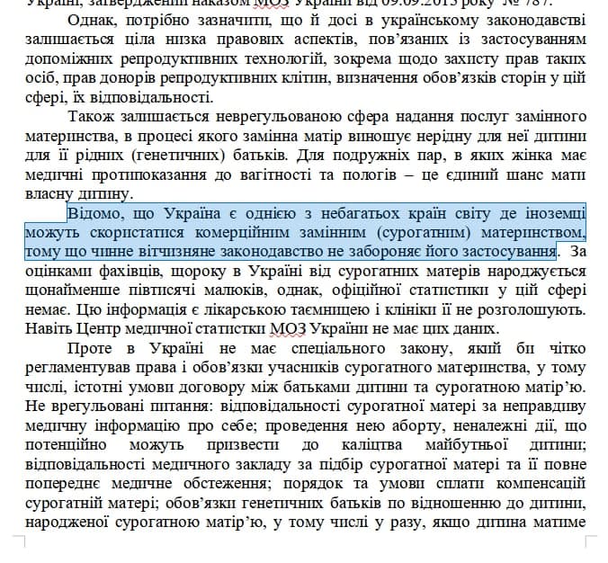 А уже в тексте закона его авторы констатируют - тема популярна среди иностранцев, и каждый год полтысячи украинок рожают детей "на экспорт". Но закона, регулирующего это нет, а значит, пора это исправить.