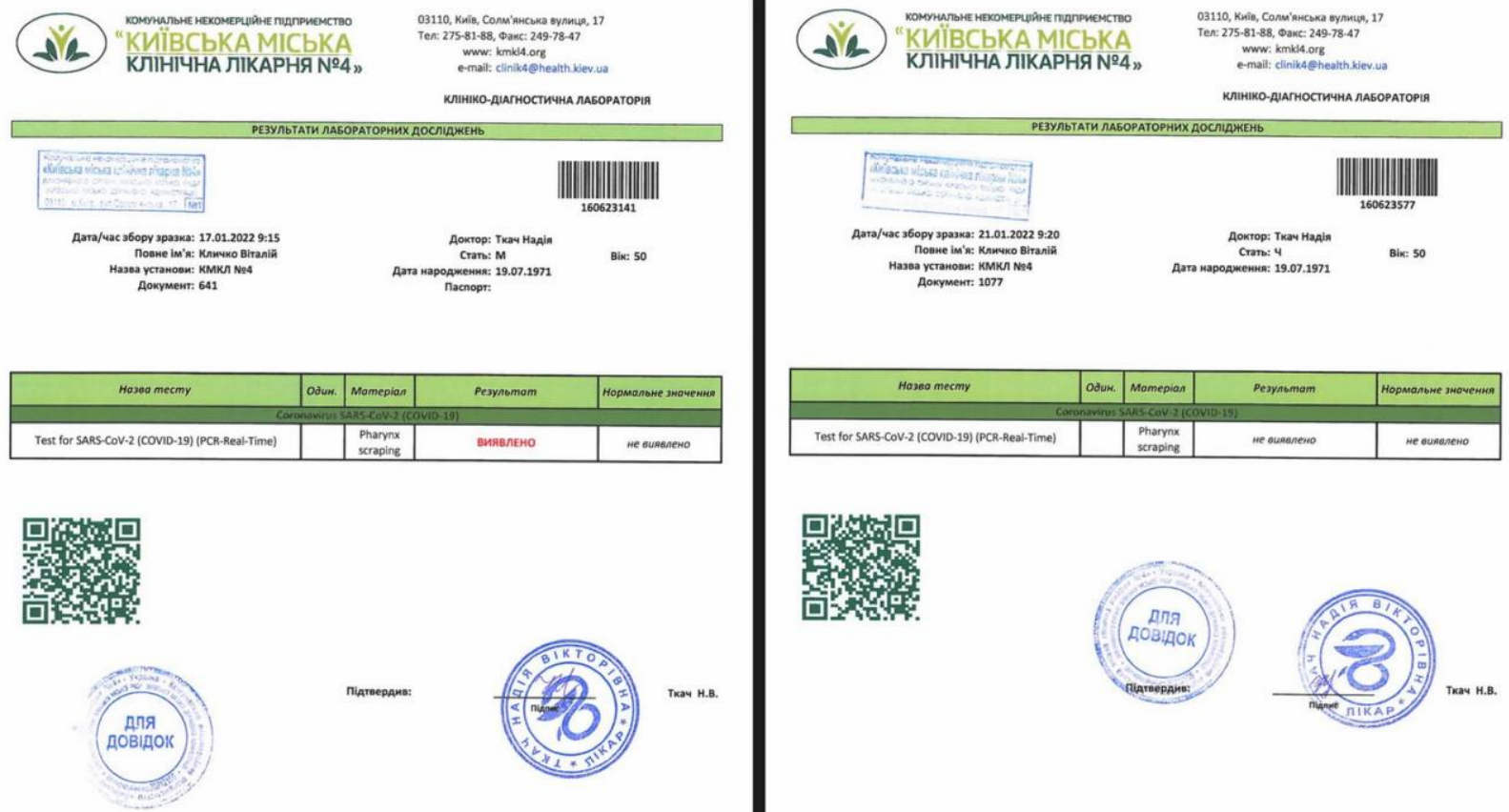 Документы эти вызывают определенные вопросы. 17 января Кличко сдал анализы на ПЦР-тест в 9:15 утра. А уже в 10:38 сообщил, что заразился.