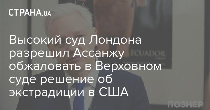 Высокий суд Лондона позволил основателю организации WikiLeaks Джулиану Ассанжу обжаловать решение о его экстрадиции в США в Верховном суде Великобритании. Прошение об обжаловании решения Ассанж подавал в конце декабря.