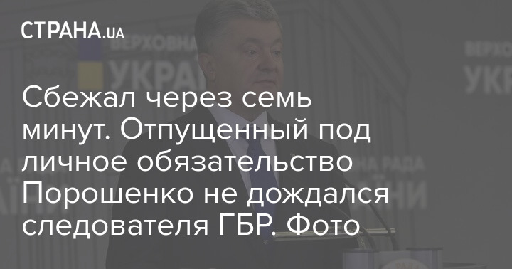 В Государственном бюро расследований (ГБР) заявили, что бывший президент Украины Петр Порошенко прибыл по вызову в бюро, но покинул помещение через 7 минут, не дождавшись следователя.