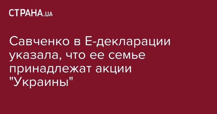 Савченко в Е-декларации указала, что ее семье принадлежат акции "Украины"