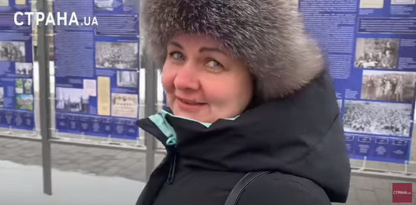 На вопрос о том, кто раздувает панику, она отвечает так же метафорично: "Карлики всегда бьются за власть. Есть такое? Вот вам и всё. [Карлики], у которых мани-мани более чем достаточно. Такие люди, как мы, простые, конечно [не хотят войны]. Вы знаете, во все века и народы всегда во всех империях были войны. Нет такого поколения, чтобы не было войны. Люди все завистливые, жадные. Это всё человеческое. Пока это всё не уйдет, это всё будет присутствовать", - говорит киевлянка.