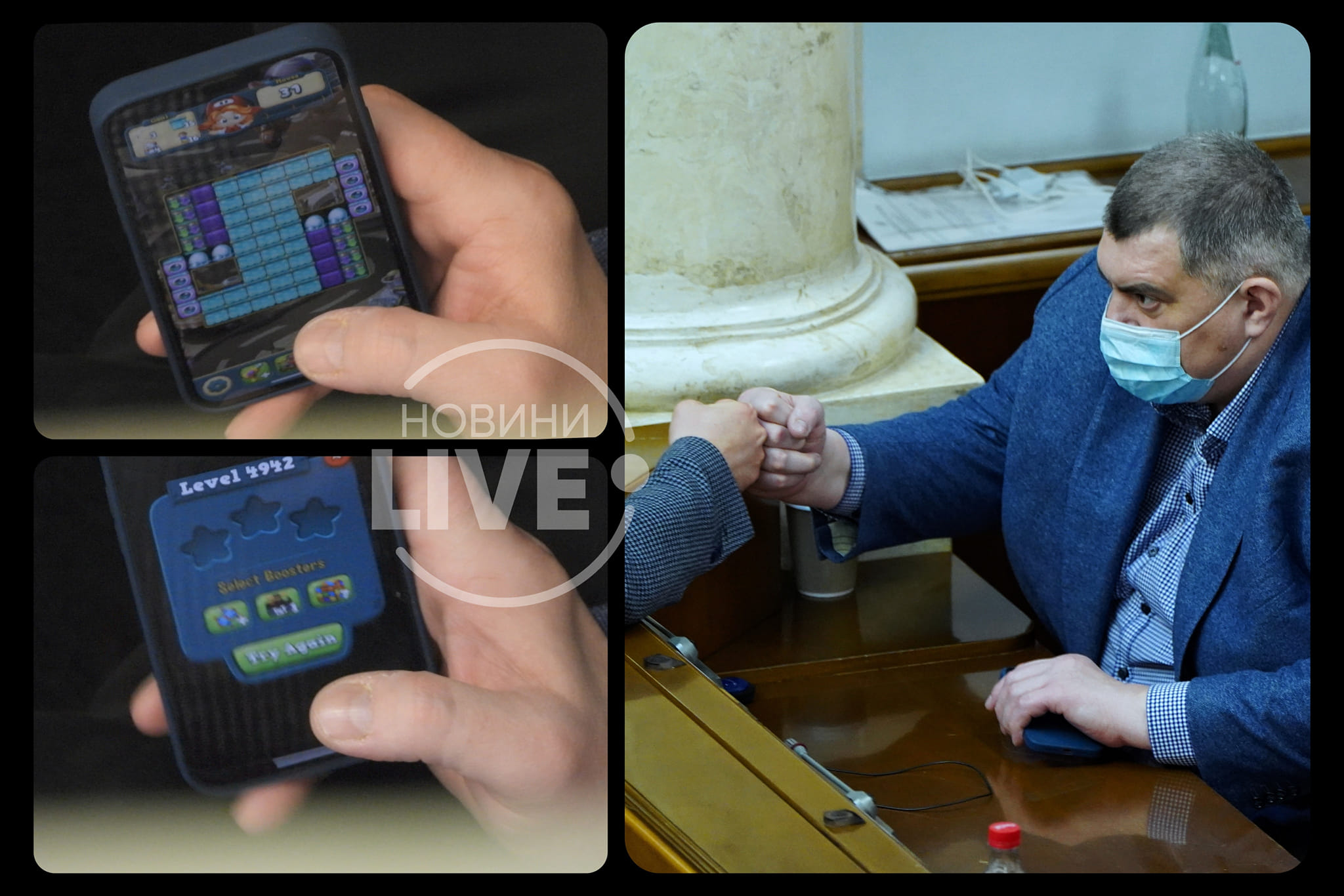 Народный депутат от "Слуги народа" и бывший актер "Квартал 95" Юрий Корявченков (Юзик) во время выступления премьер-министра Дениса Шмыгаля играл в мобильную игру и на шаг приблизился к 5 000 уровню.