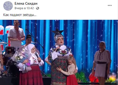 - Захотела к маме? А почему захотела к маме? Тогда я спою тебе, - сказал Данилко в образе Сердючки и запел: "Батько наш - Бандера. Україна - мати. Ми за Україну будем воювати". Его поддержала подпевка, а зрители зааплодировали.