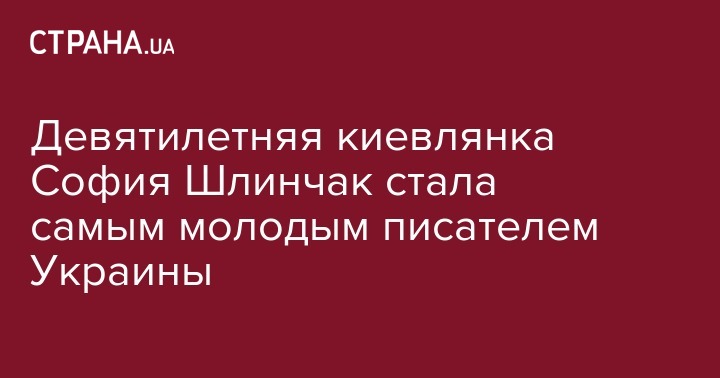 Киевская школьница София Шлинчак, которой всего 9 лет, была признана самой юной писательницей и иллюстратором к собственному прозаическому произведению "Необычайные приключения Кохи, Айка и Дзю". Национальная Книга рекордов Украины внесла имя Шлинчак за исключительный талант в таком молодом возрасте. Об этом сообщают "Украинские Новости".