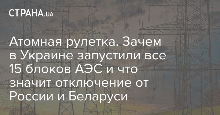 Не исключено, что запуск всех 15 блоков связан и с готовящимся тестированием нашей энергосистемы в рамках подготовки к синхронизации с европейской энергосистемой. Мы уже писали, что украинская энергосистема должна будет отсоединиться от России и Беларуси и три дня работать в автономном режиме.