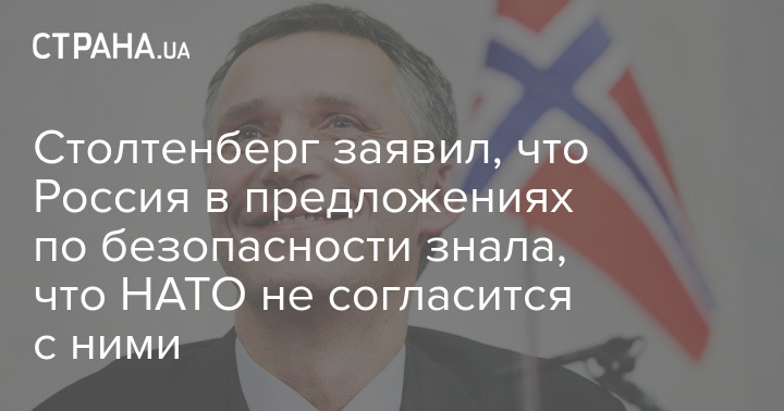 Столтенберг заявил, что Россия в предложениях по безопасности знала, что НАТО не согласится с ними
