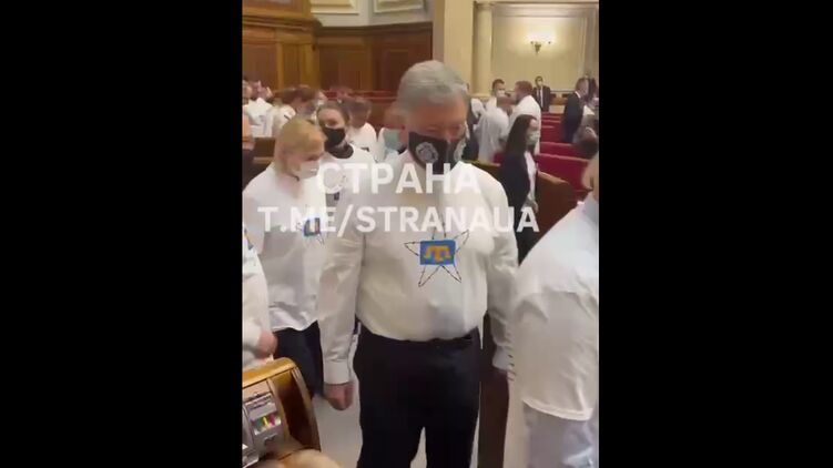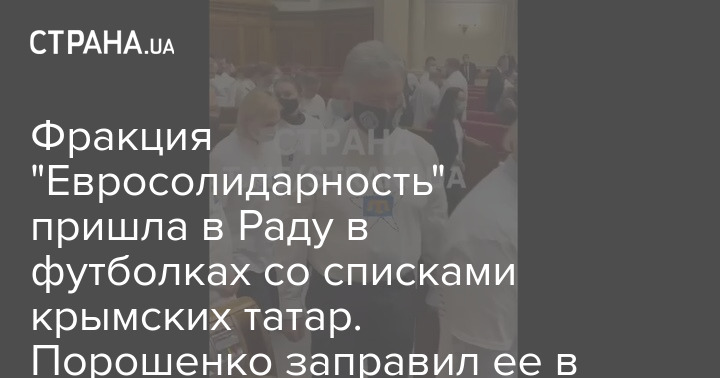 Фракция "Евросолидарность" пришла в Раду в футболках со списками крымских татар. Порошенко заправил ее в штаны