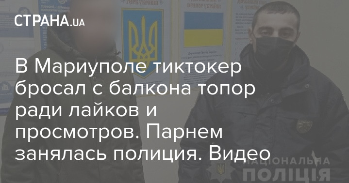 В Мариуполе тиктокер бросал с балкона топор ради лайков и просмотров. Парнем занялась полиция. Видео