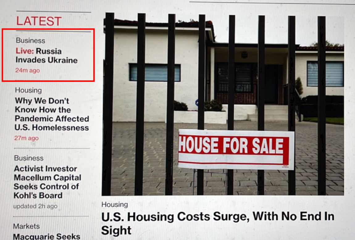 Сегодня ночью на сайте агентства Bloomberg появилось сообщение "Россия вторгается в Украину". Материал был помечен словом Live: то есть это задумывалось, что это будет "горячий" обновляемый сюжет с подробностями "вторжения".