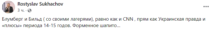 Телеведущий Ростислав Сухачев сравнил нынешнюю риторику западной прессы с тем, что писали украинские СМИ в 2014-2015 годах - намекая на поток фейков, который тогда захлестнул медиа.