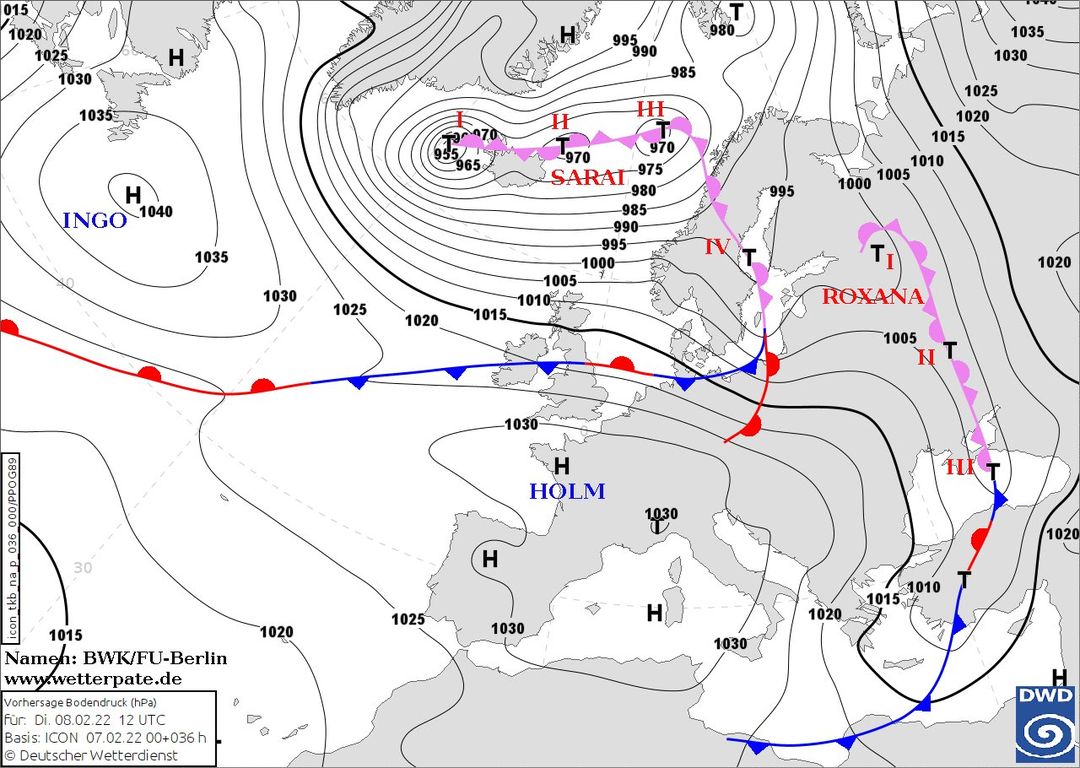 Во вторник, 8 февраля, мощная циклоническая система на севере Европы прорвется осадками и сильным ветром через циклон Roxana в Украину.